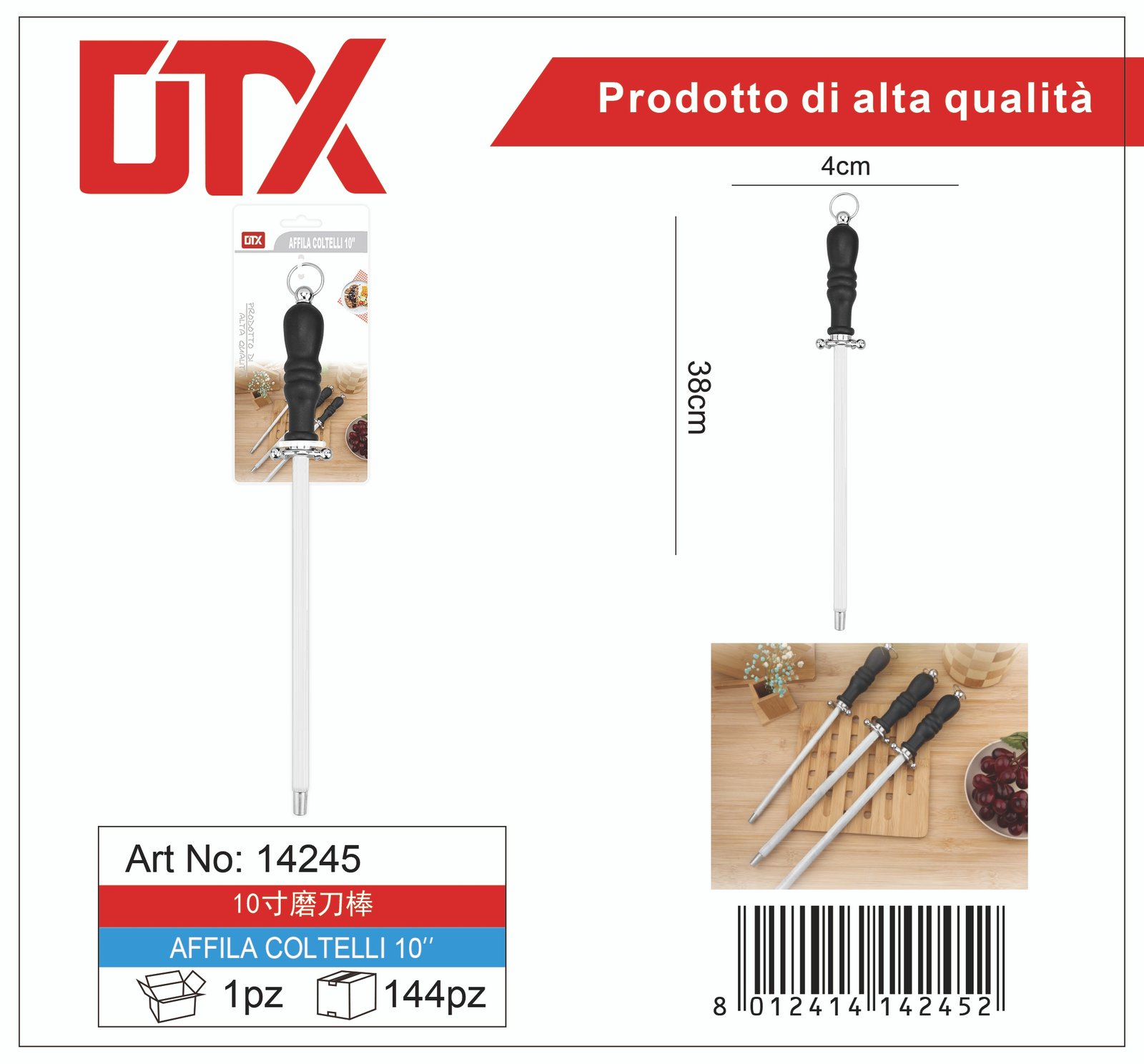 €4.50 Knife sharpener 10cm In stock Quantity Add to cart Description Description Knife sharpener 10cm 8012414142452 CUTLERY Brand: DTX Related products CUTLERYKITCHENWARE4pcs Table Forks K150 €3.99 Add to cart CUTLERYKITCHENWAREMarob Fork In 18/10 Stainless Steel €2.70 Add to cart CUTLERYKITCHENWARESet Of 3 Pcs Of Ceramic Knives With Noir Rack €24.99 Add to cart